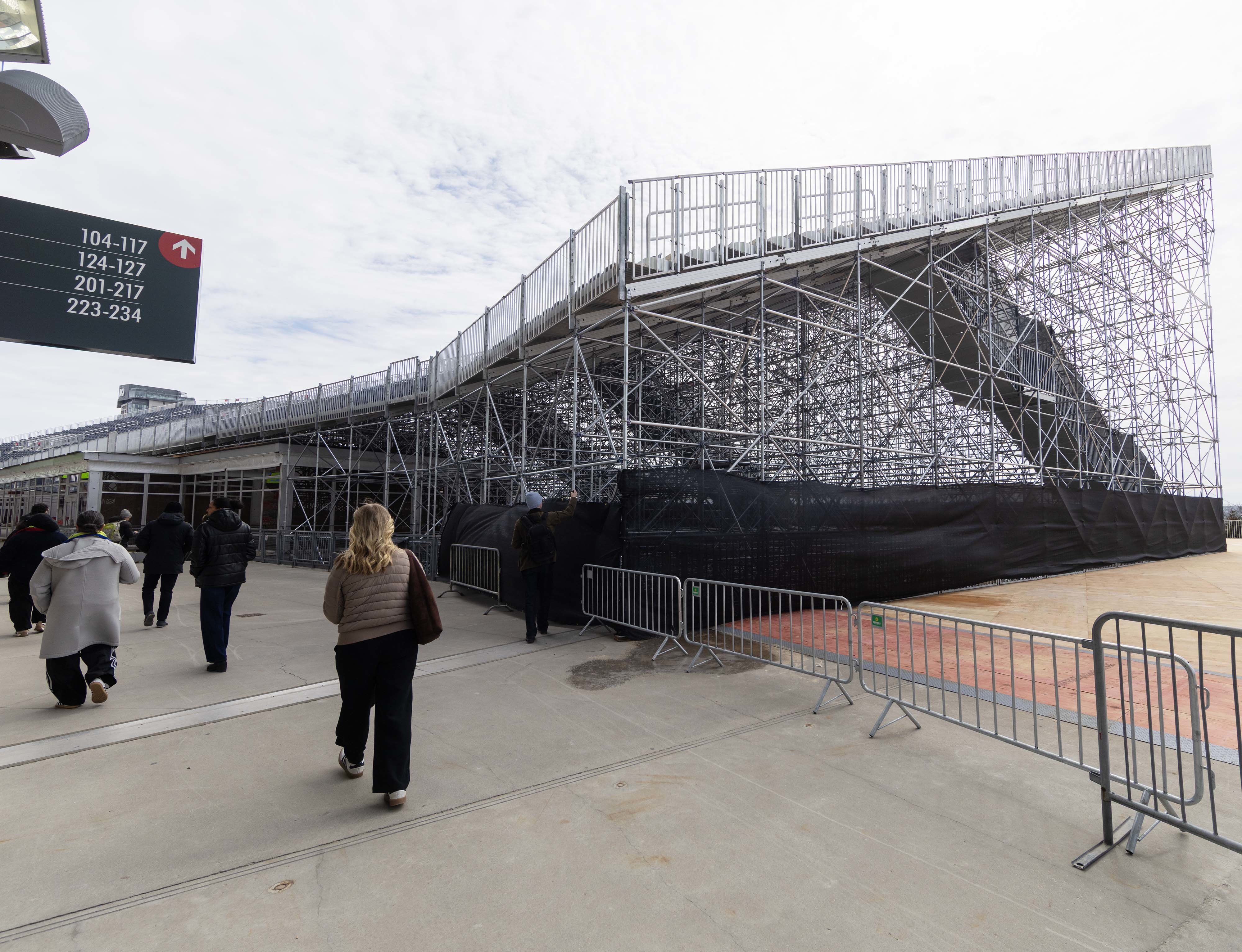 3月24日,媒体成员参不雅加拿大多伦多通顺场的一处临时露天看台。新华社发(邹峥摄)