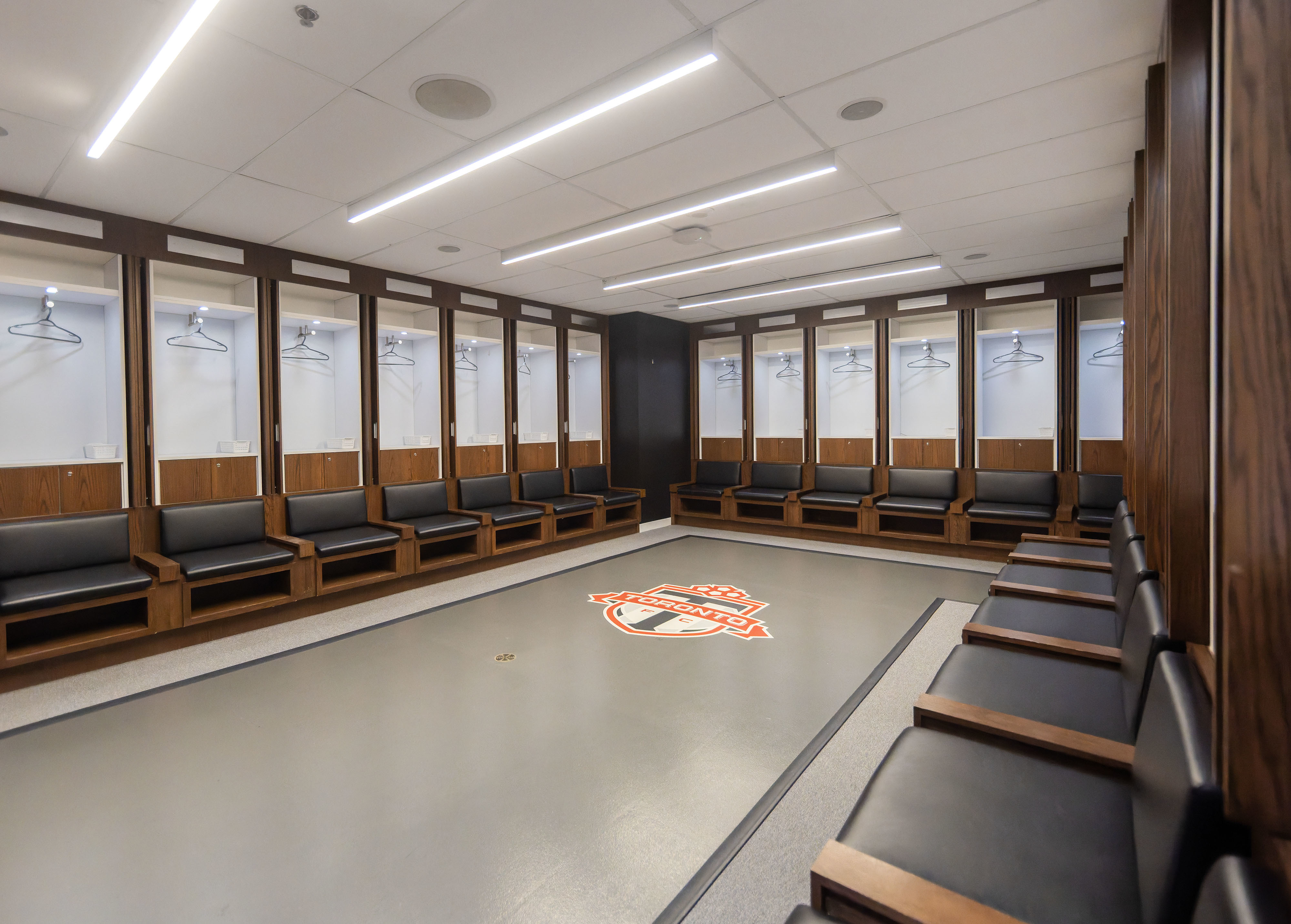 这是3月24日在加拿大多伦多拍摄的多伦多通顺场球员更衣室。新华社发(邹峥摄)