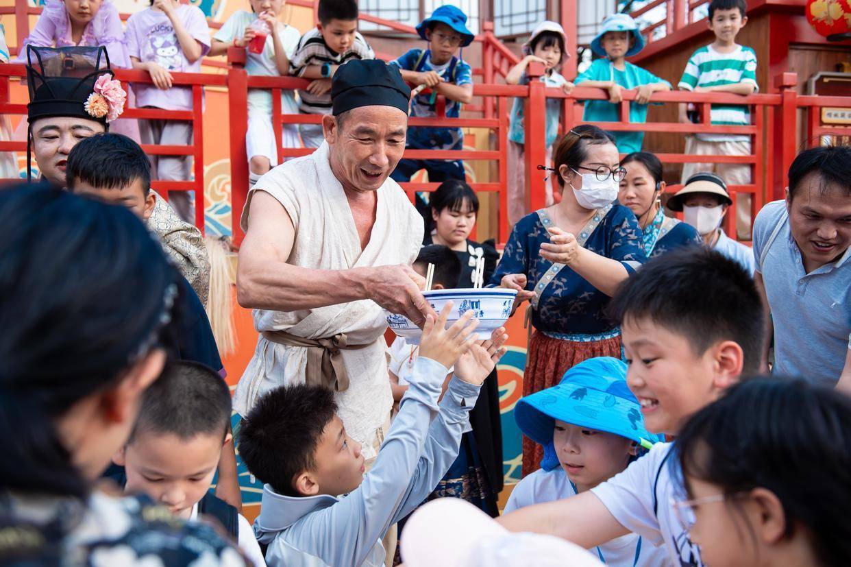 据悉,本年深圳锦绣中华端午节动作丰富多元。全新打造的《锦绣盛市・梦华录》主题区艾草轻悬,古意盎然,搭客们在主题区内巧手制香囊、体验传统掷彀礼,还躬行参与亲子包粽大赛与亲子吃面大赛,比赛现场搅扰超卓,欢声笑语不停,不仅增进了亲子干系,庞大搭客还感受到了端午佳节的甘好意思与温馨。