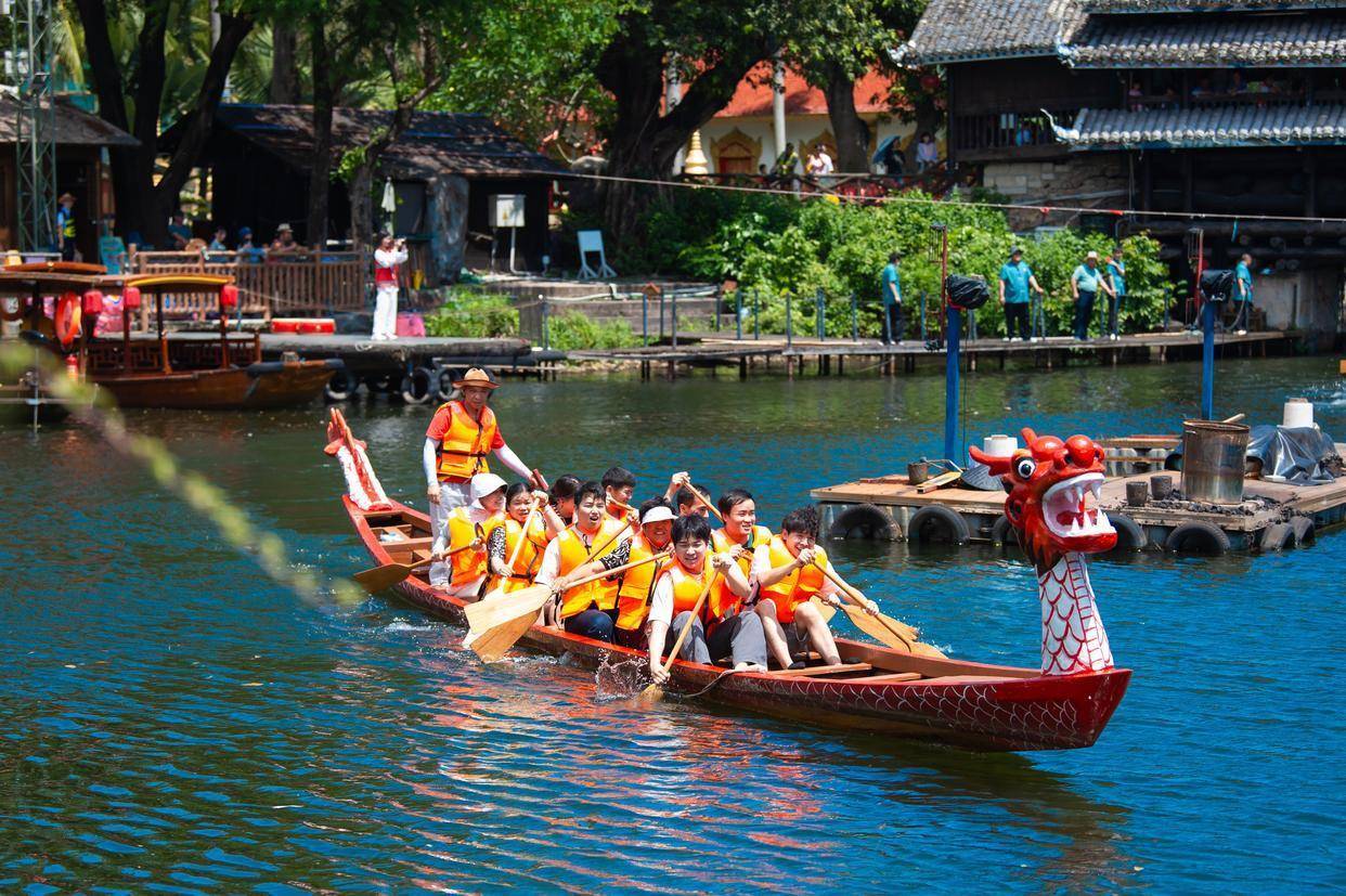 主题区内,身着古装的NPC穿行贩子关心与搭客互动,数十场古风快闪演艺令东说念主驻足。更引东说念主垂涎的是端午欺压晶莹晶莹的水晶粽与阴凉解暑的艾叶冰饮,让北宋端午的贩子火食平直在舌尖回生。同期,中国俗例文化村更是化身俗例大不雅园,惊惶的踩钢刀、吞火喷火等百场非遗绝技绝艺令东说念主过目牢记,一年一度的非遗苗族龙船节盛装巡游,现场饱读乐震天,盛装歌队的银饰在阳光下能干。