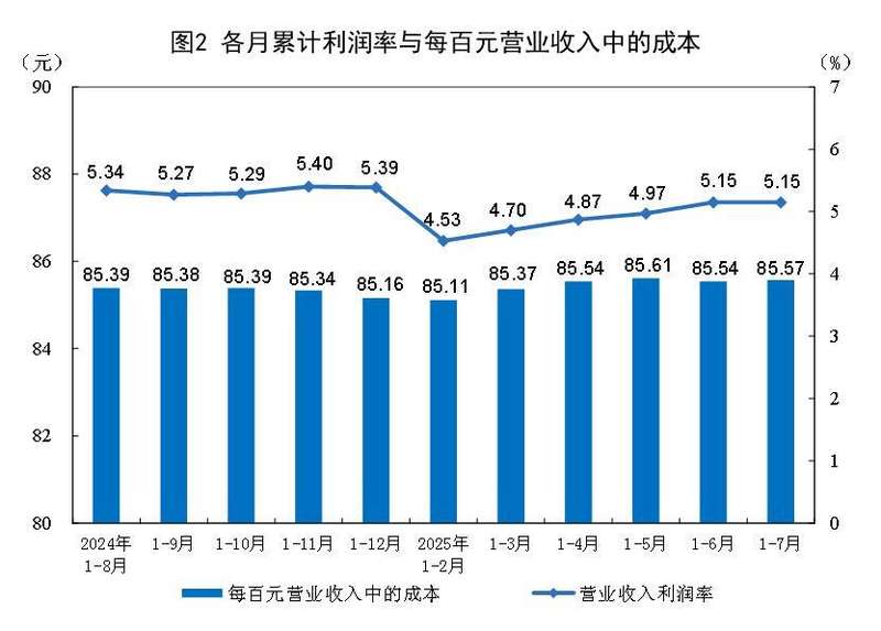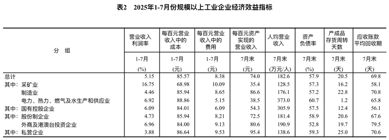 1—7月份,范畴以上工业企业结束生意收入78.07万亿元,同比增长2.3%;发生生意资本66.80万亿元,增长2.5%;生意收入利润率为5.15%,同比下落0.21个百分点。