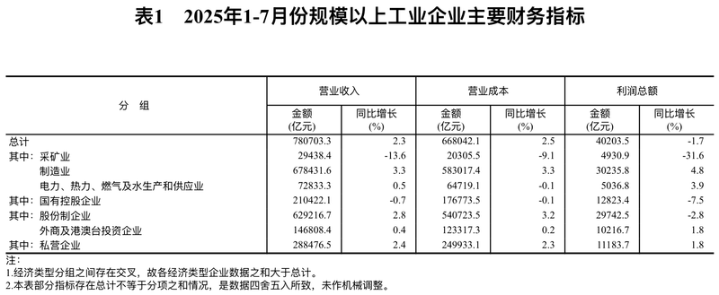 新京报讯 据国度统计局音书,1—7月份,寰宇范畴以上工业企业结束利润总和40203.5亿元,同比下落1.7%(按可比口径规划,详见附注二)。