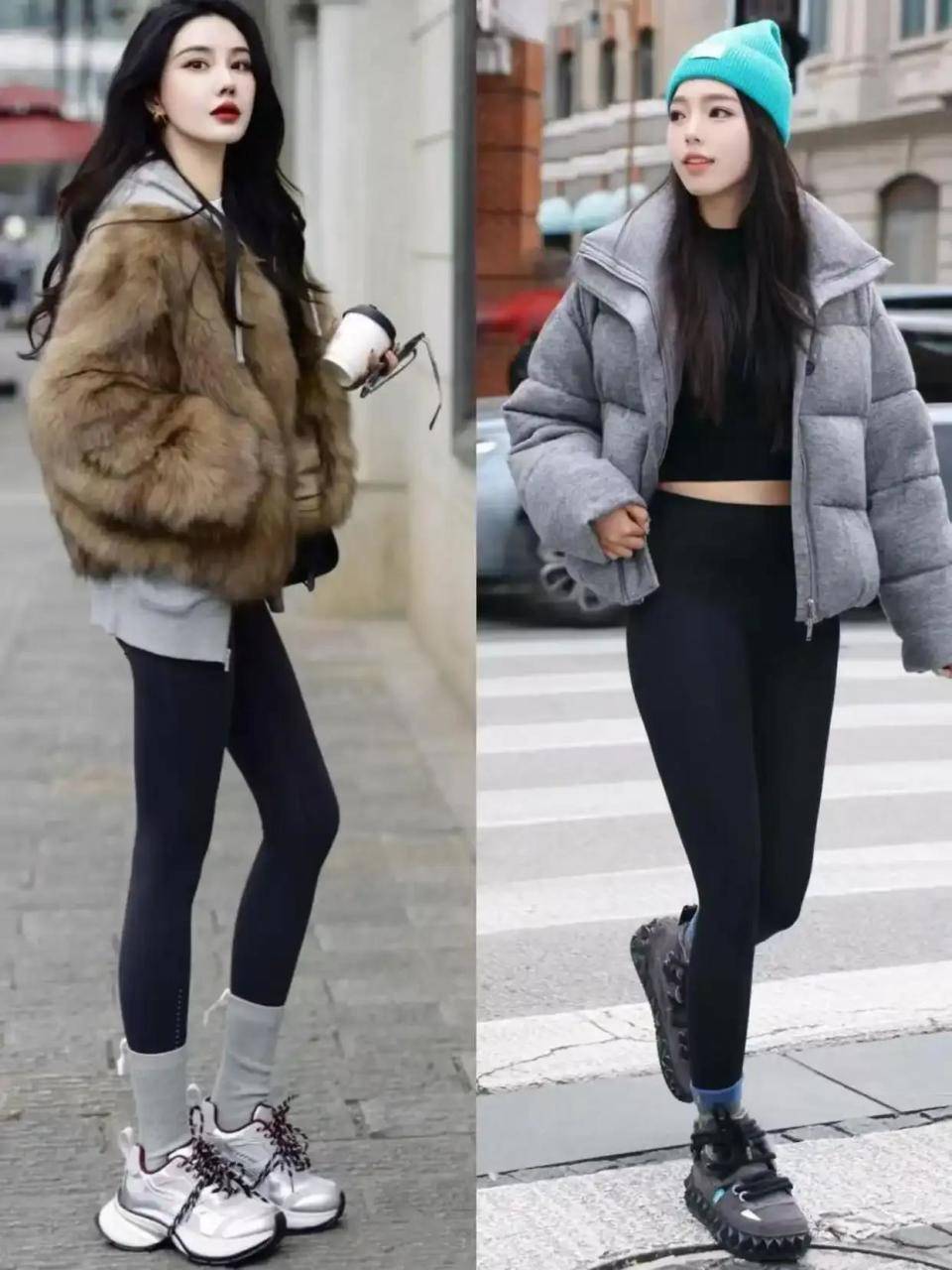 以上这种穿法确实不合安妥今的冬季,况兼对体格条目亦然极高的,要是有点胯宽腿粗,微胖体格,根柢操纵不住这种紧身的无痕裤。